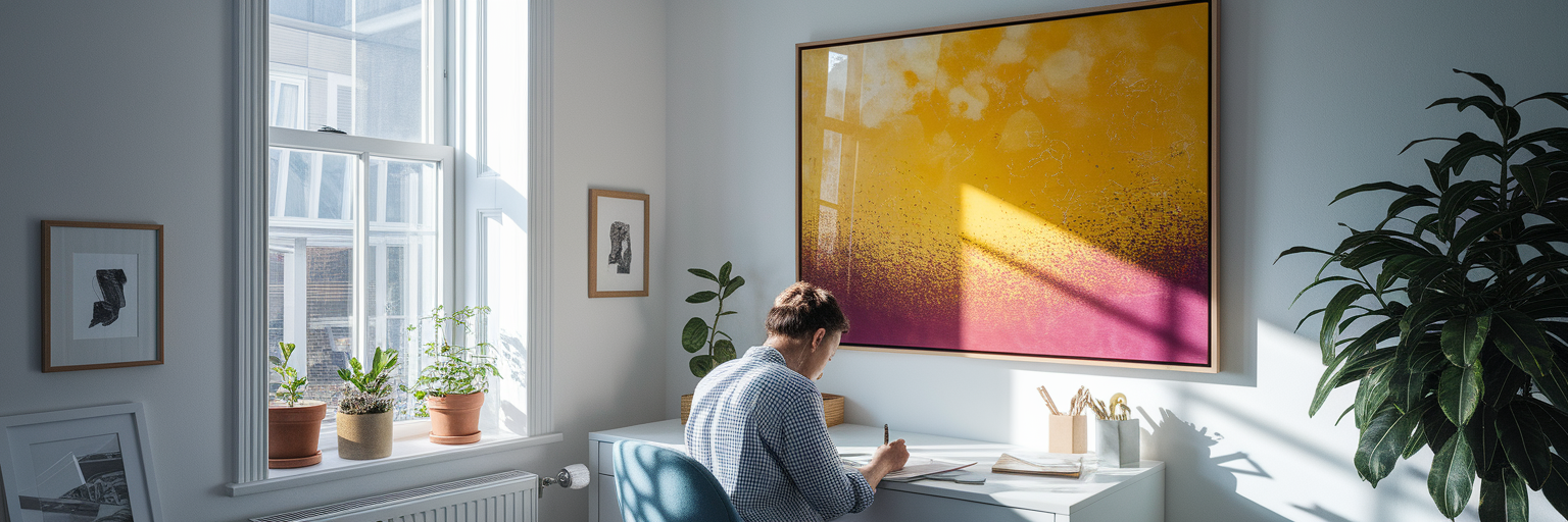 If I need to feel more alert for a morning meeting, I find that a piece of art with hints of yellow gives me a gentle nudge. These principles are your toolkit for choosing effective home office wall art ideas. A great way to start is by browsing art collections sorted by colour to see what speaks to you.