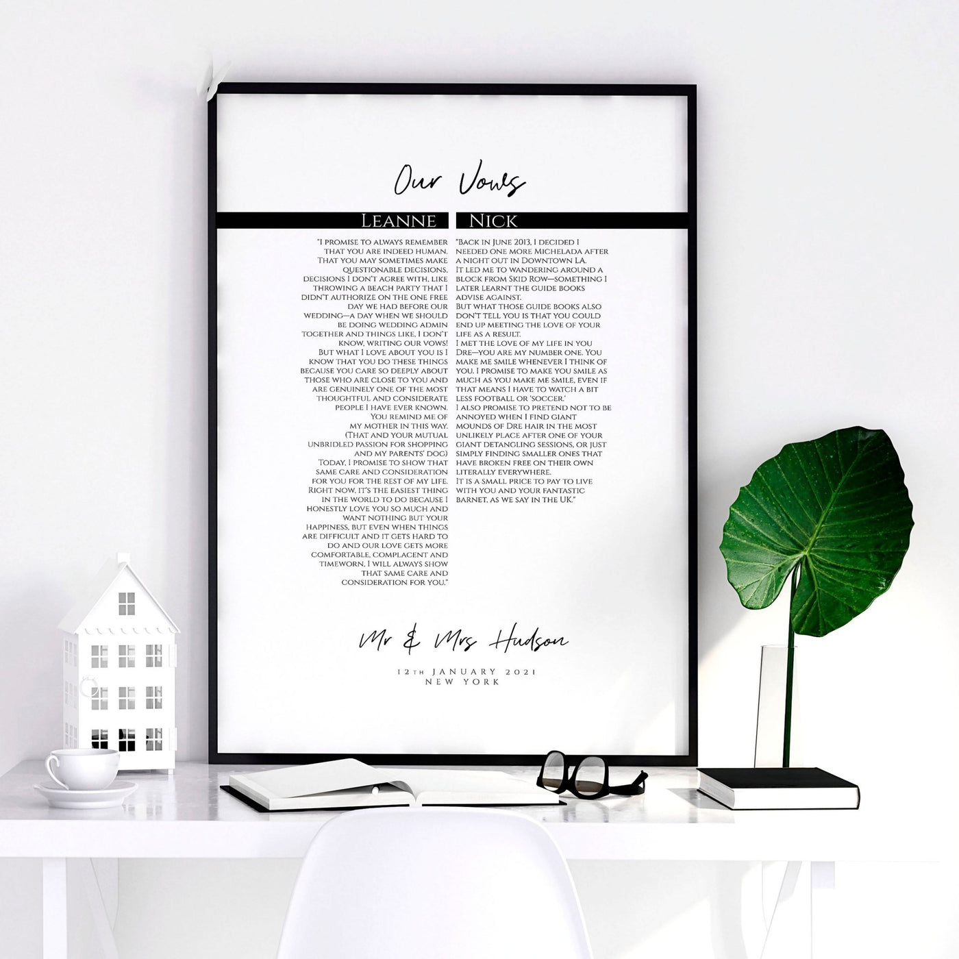 Las letras tienen una forma mágica de expresar emociones. Toma todas esas sentidas cartas de amor y conviértelas en una obra de arte. También puede encontrar un calígrafo profesional para transcribir sus cartas más preciadas en un hermoso arte mural. El resultado será una obra de arte realmente impresionante que cuenta tu historia de amor única.